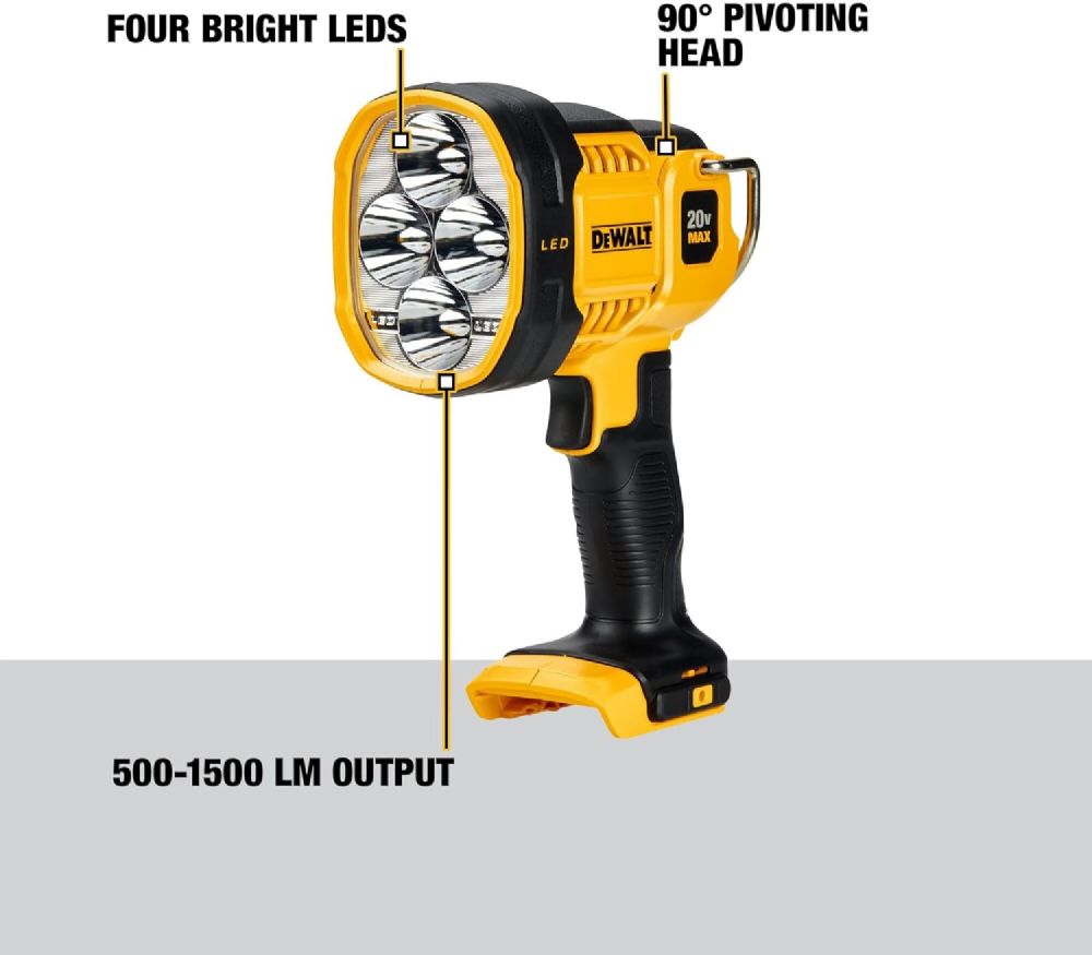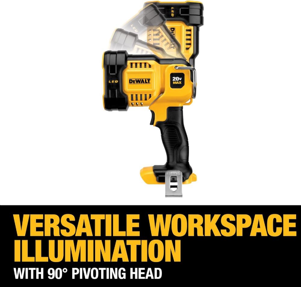 Pivoting head allows for hands-free operation and light to be projected in multiple directions while standing on its base